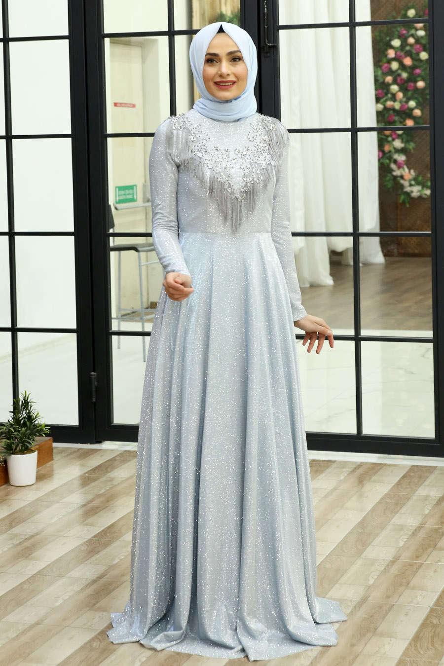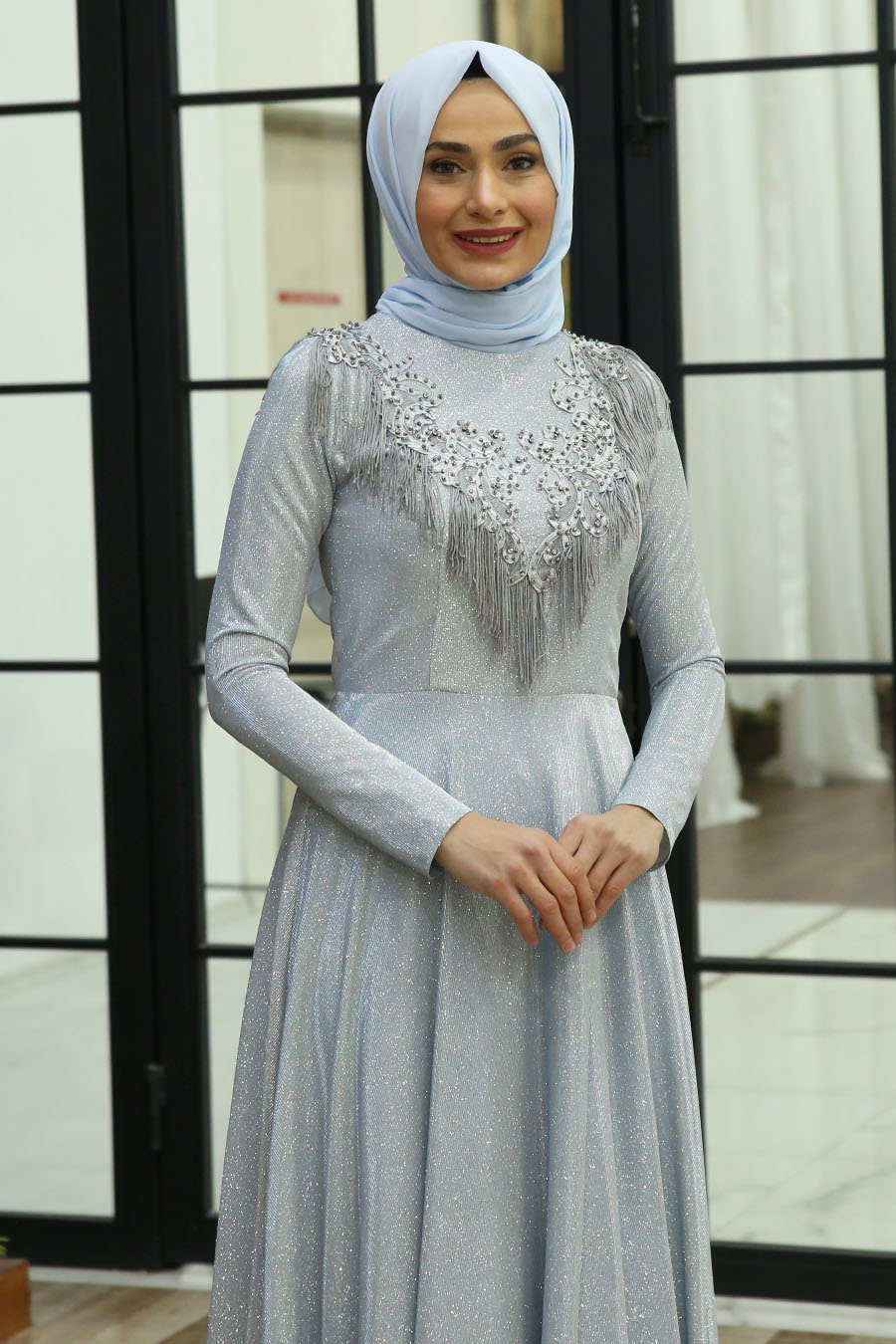 SILVERY ICE BLUE EVENING DRESS | |||
